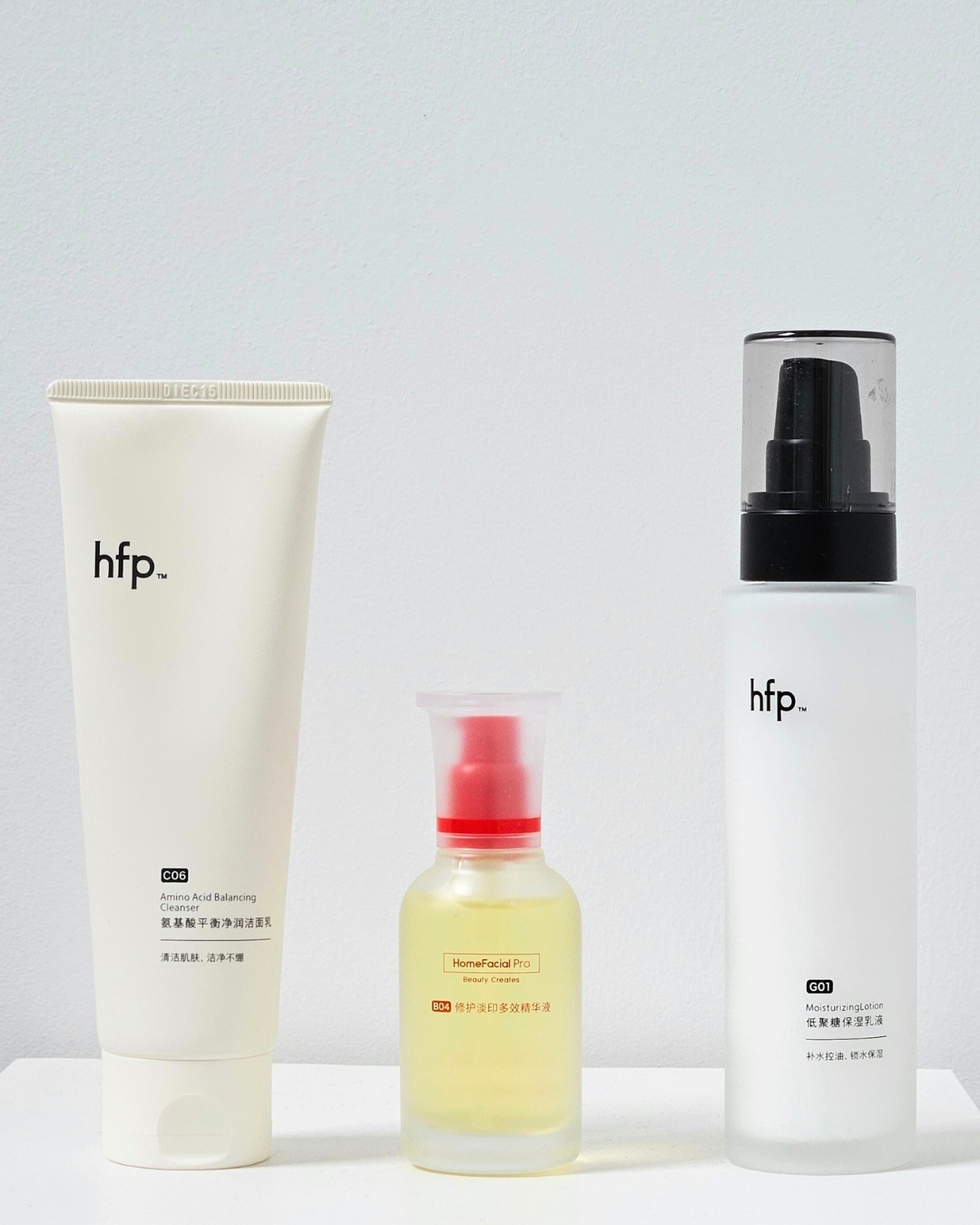 This set contains the following products 1) Amino Acid Balancing Cleanser 2) Acne Mark Lightening Serum 3) Oil Balance Refreshing Lotion
